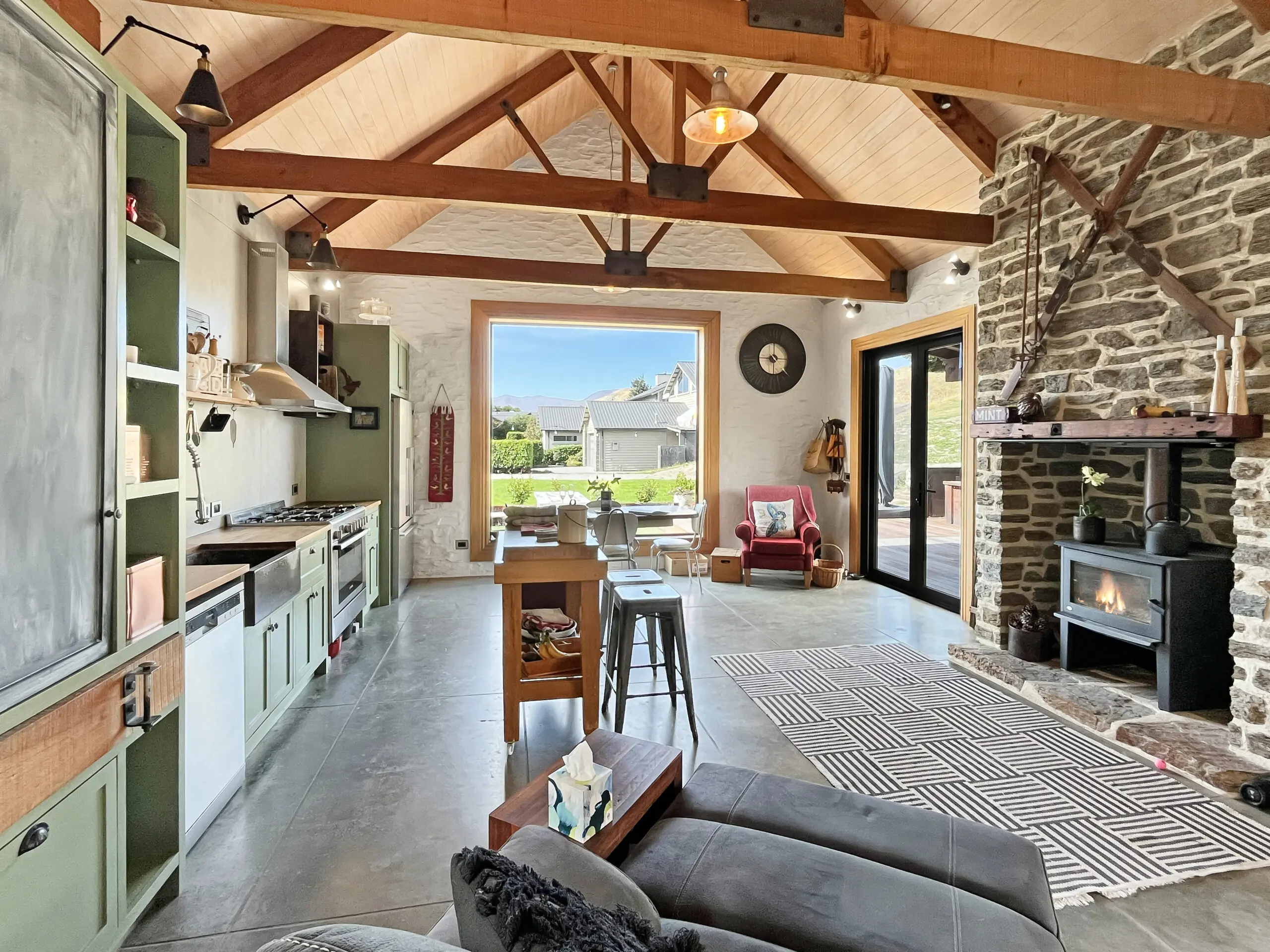 The Shed blends Central Otago miner’s cottage charm with Swiss chalet style.
