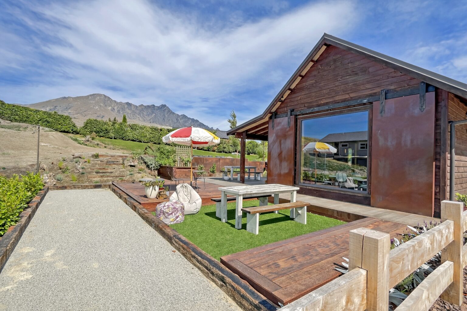 A relaxed 15-minute walk leads to local shops, cafés, restaurants, and public transport connecting you to Tāhuna / Queenstown. The location offers a calm, rural feel while still being close to Queenstown’s renowned wineries, dining, adventure activities, and alpine scenery.